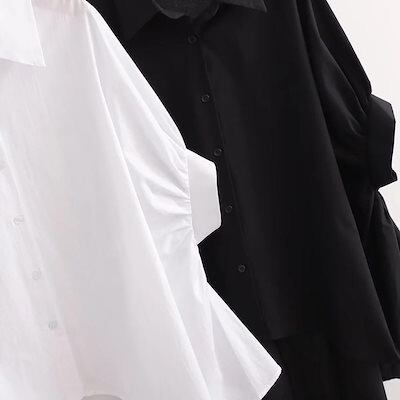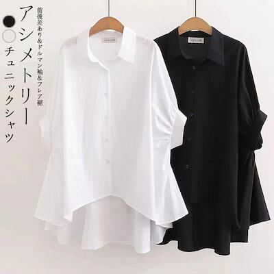 チュニック シャツ 半袖 ブラウス レディース きれいめ 春 夏 シャツブラウス ロング トップス 半袖シャツ 襟付き 前開き フレア裾 白シャツ おしゃれ シャツ ブラウス ドルマンスリーブ ギャザ