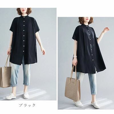 チュニック ブラウス 長袖 半袖 シャツ レディース きれいめ ロングシャツ 羽織り おしゃれ 半袖シャツ 長袖シャツ 春夏 立ち襟 ギャザー フレア ロング 前開き 大きいサイ
