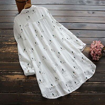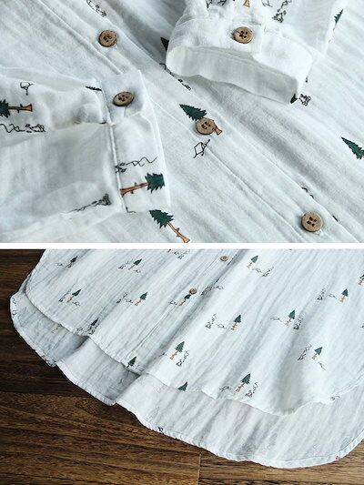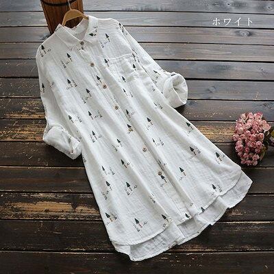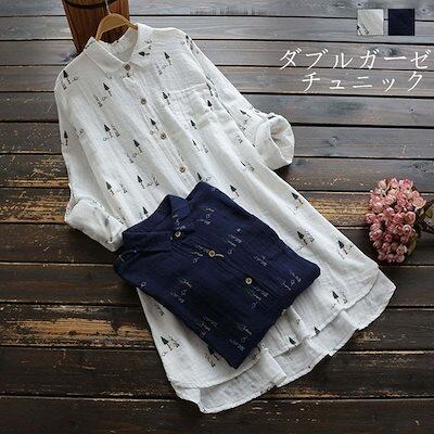 チュニック ブラウス 長袖 レディース トップス シャツ ロング シャツブラウス 春 夏 柄 綿100% ロングシャツ 羽織 ガーゼ 前開き 前後差 ガーゼシャツ 柔らかい 総柄 きれいめ 大きいサイ