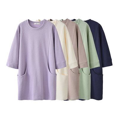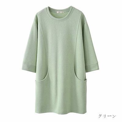チュニック レディース 七分袖 Tシャツ 綿100 トップス 春 夏 秋 スウェット プルオーバー 大きいサイズ ゆったり チュニックワンピース 膝丈 ミドル丈 カットソー 7分袖 クルーネック 無地