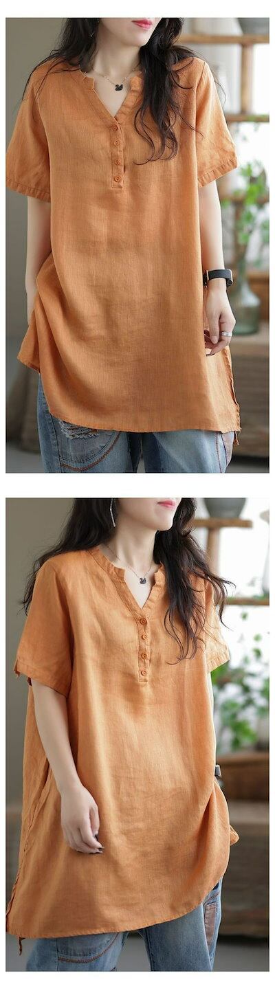 チュニック シャツチュニック レディース 半袖 綿麻シャツ ロングシャツ コットン リネン トップス 夏 春秋 大きいサイズ ゆったり カジュアル 柔らか 無地 森ガール 通勤 仕事 大人 ナチュラ