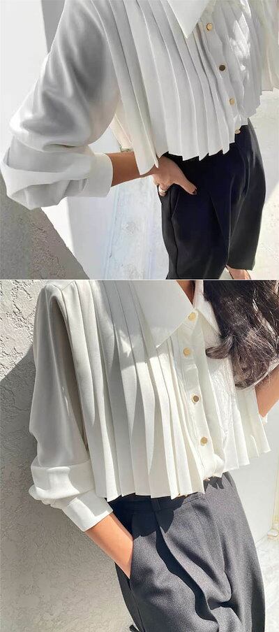 プリーツシャツ レディース チュニック トップス 春 夏 秋 ロングシャツ シャツ ブラウス 羽織 長袖 フェミニン スーツ インナー レイヤード 2WAY オフィス きれいめ プリーツ タック カジ