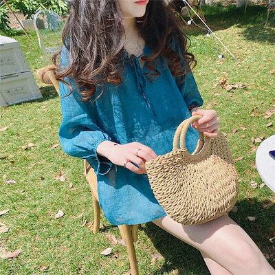 リネンブラウス チュニック 長袖 シャツ レディース 春夏 綿麻風 シャツブラウス 大きいサイズ ゆったり トップス 体型カバー 涼しい 薄手 大人 可愛い Vネック ギャザー プルオーバー フ 薄手