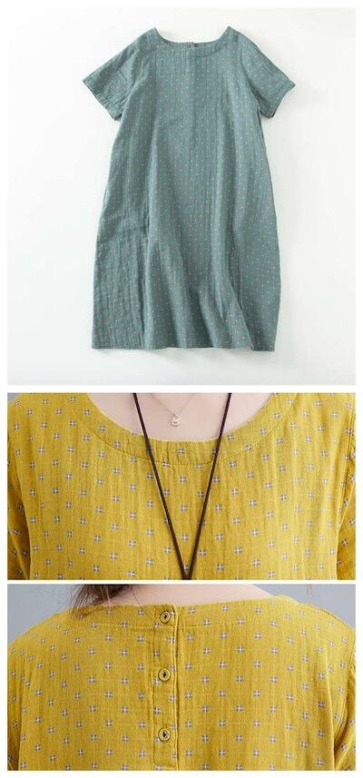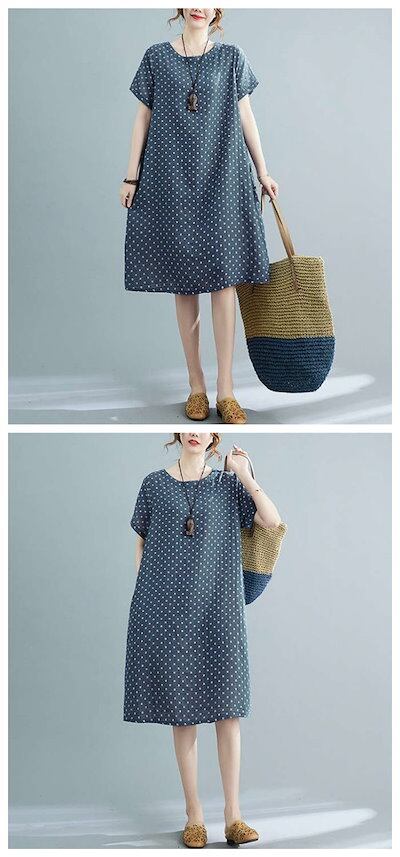 ガーゼワンピース チュニック レディース トップス 半袖 大きいサイズ 膝丈ワンピース 半袖 夏 ドット柄 ワンピース ドット かわいい 40代 ゆったり 体型カバー 綿 着痩せ シンプル 通気性 部