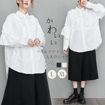 シャツ レディース トップス 長袖 春 ロングシャツ チュニック ブラウス フリル 長袖シャツ ロング丈 シャツブラウス 羽織 ロング ゆったり 前開き 白シャツ 切替 襟付き 折襟 きれいめ シャツ
