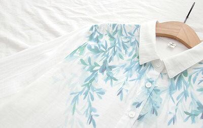 ガーゼシャツ チュニック シャツ ブラウス レディース 白シャツ 春 夏 トップス 葉柄 シャツブラウス 二層ガーゼ 長袖 シンプル 柄 インナー 折襟 綿 コットンシャツ ホワイトシャツ 通気性 綿