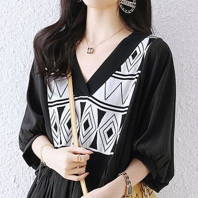 チュニック 半袖 ブラウス 夏 半袖シャツ レディース シャツ シャツブラウス トップス レイヤード風 シフォン ブラウス 大きいサイズ 白 黒 vネック tシャツ 柄 総柄 きれいめ おしゃれ ゆ