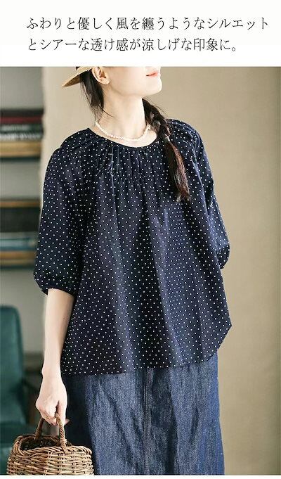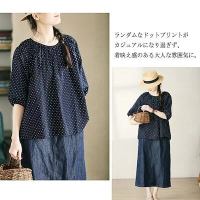 【大好評】ブラウス トップス ドット柄 半袖 Tシャツ 春 夏 綿麻 ブラウス リネンシャツ 麻 ドットシャツ チュニック レディース 夏シャツ 半袖シャツ tシャツ シャツブラウス 秋 5分袖 体型
