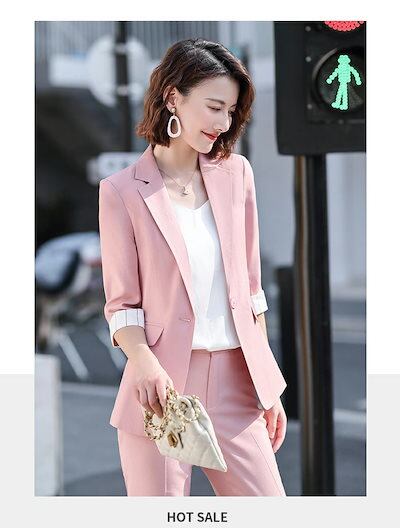 セットアップ レディース パンツドレス 上下セット パンツ スーツ トップス ジャケット テーラードジャケット 七分袖 テーパードパンツ 卒業式 入学式 入園式 卒園式 春 夏 秋 グレー 緑 ピンク
