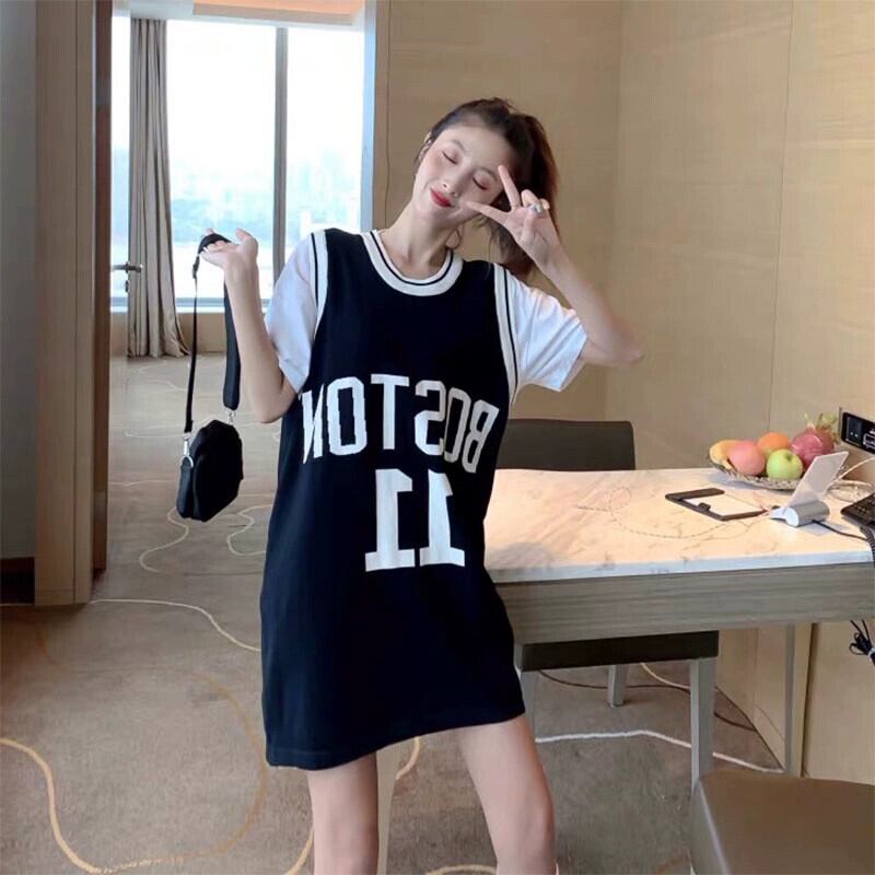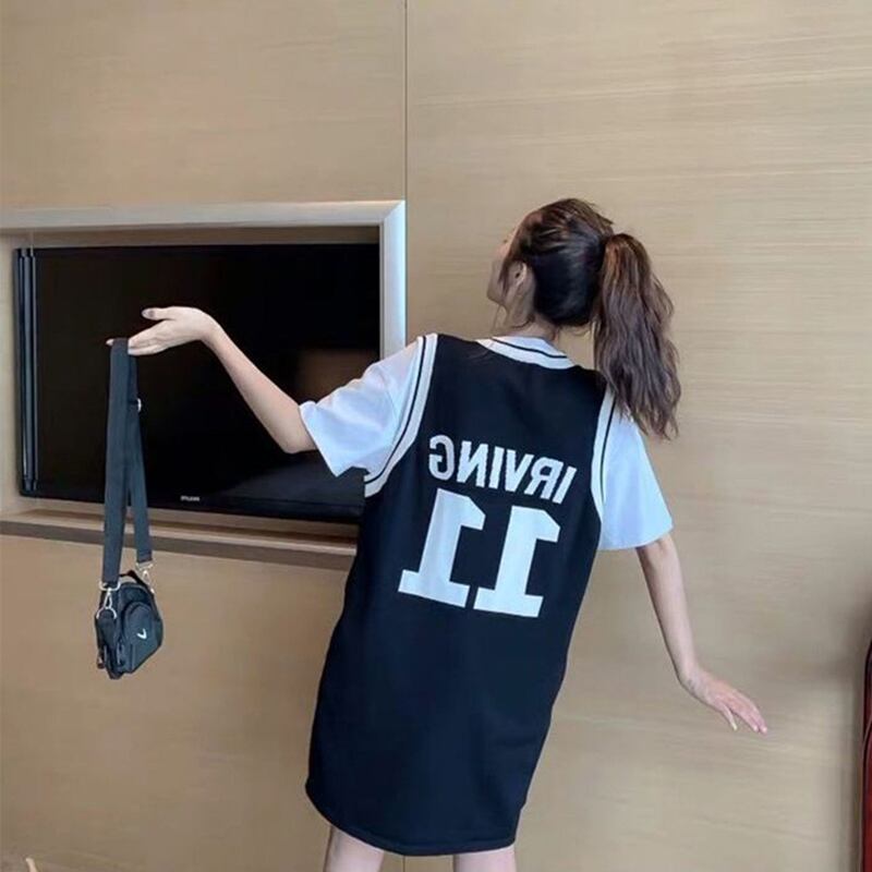 スポーツドレス女性の夏スプライシング半袖バスケットボールユニム 2023 新しいルーズスタイル純粋な綿 t シャツスカート コットン サマー 夏物 Tシャツ ピュア トップス シャツ takotako20180208b16594413532