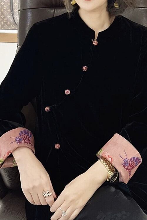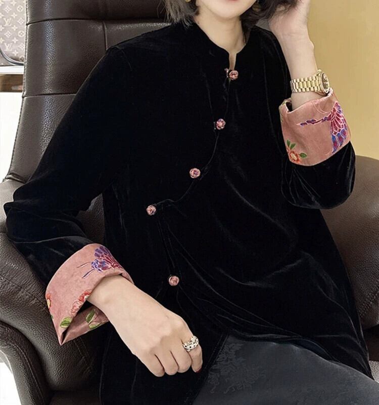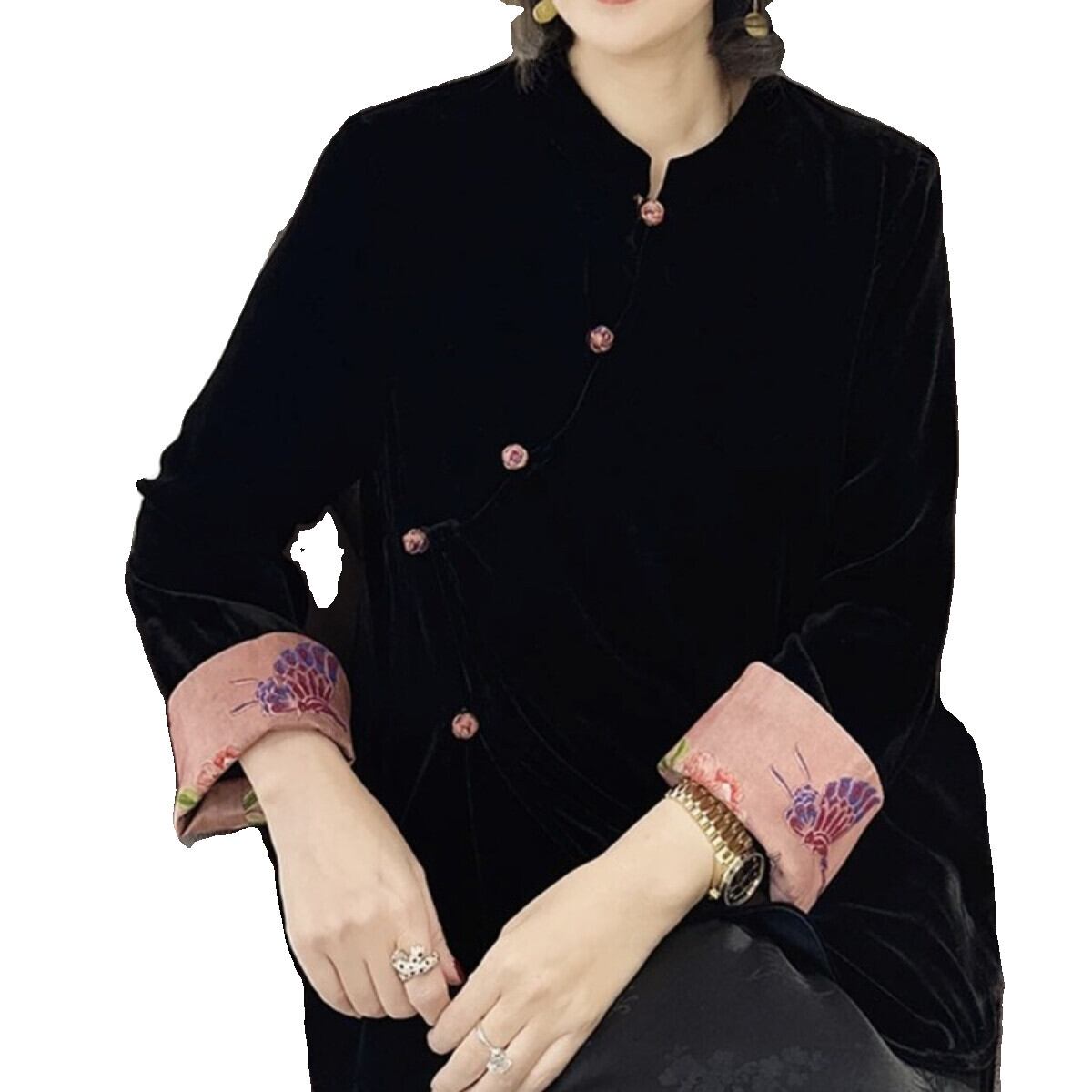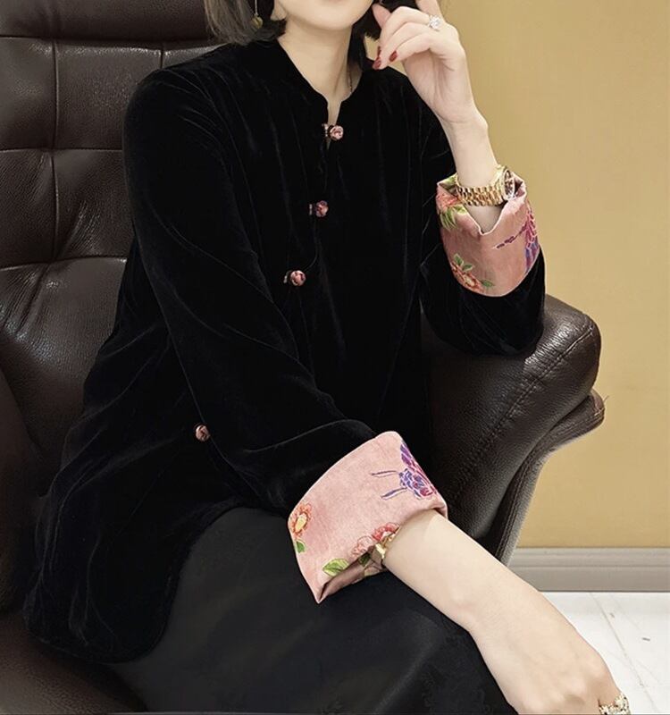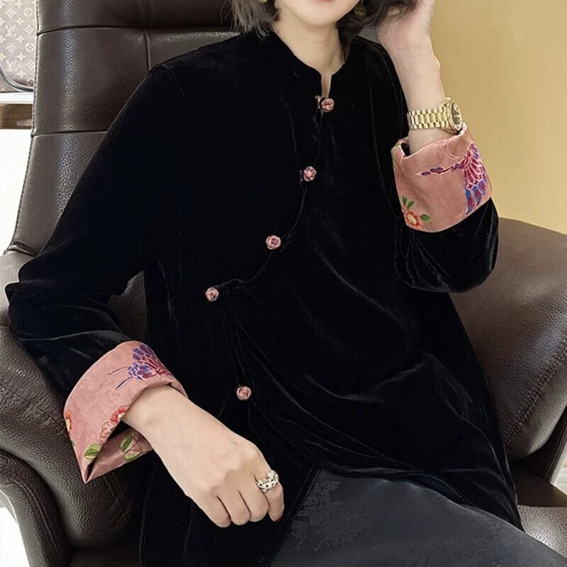 2024 中国風の新中国風のベルベット歌錦ジャケット女性の春と秋の新スタイルレトロライト高級気質ルーズ長袖トップ ロング スプリング 春物 オータム 秋物 トップス シャツ takotako20180208b17843049245