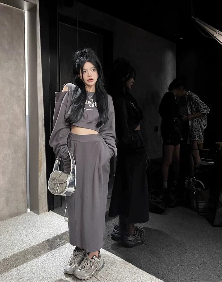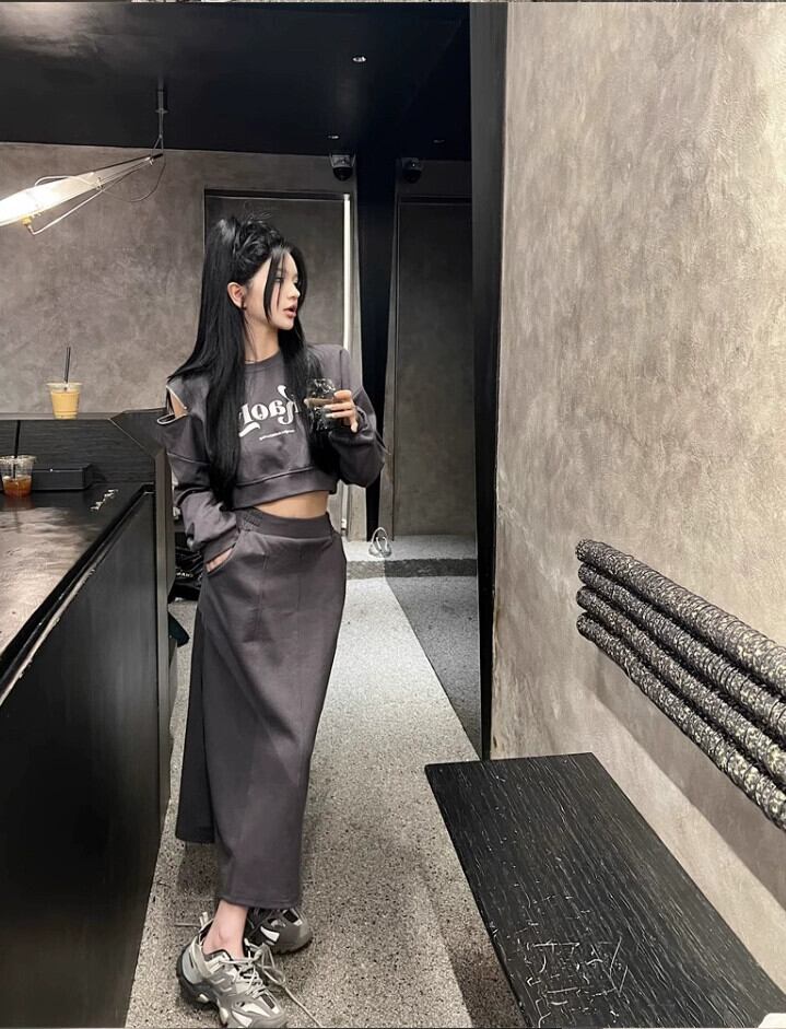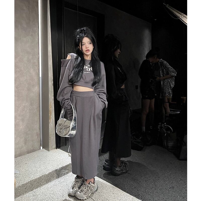 2023 春と秋の新ファッションカジュアル長袖スウェットシャツロングスカート 2 点セットインターネットセレブスタイル痩身ファッションスーツ女性 スプリング 春物 オータム 秋物 トップス シャツ takotako20180208b45584997398