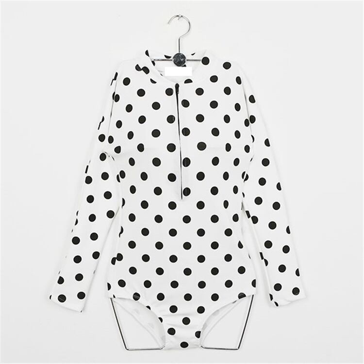 韓国ファッション 長袖 ドット ジッパー 水着 小さな胸を集めた 保守的 カバー腹 温泉 ワンピース水着