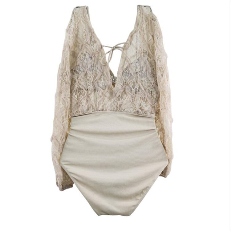 INSスタイル 新作 温泉 お出かけ 水着 レース 長袖 深いV 背透けて 縫付 ハイウエスト ワンピース水着