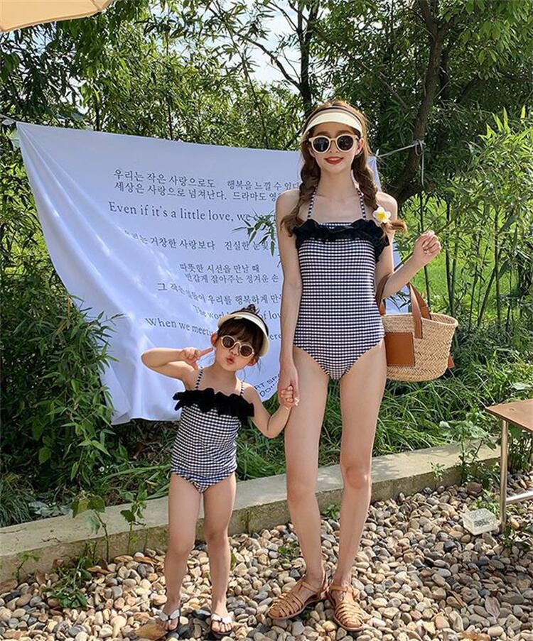 温泉 女の子 プリンセス かわいい 親子 母娘 子供 水着 女の子 格子縞 ワンピース水着