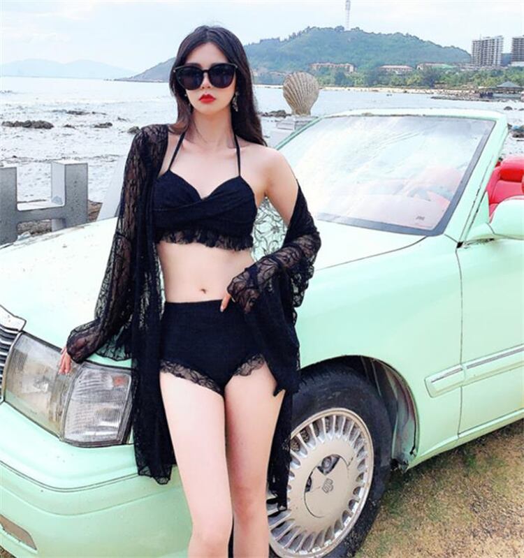 ビキニ 3点セット レース セクシー ボクサー 長袖 スパ お出かけ ブラウス 水着 デザインセンス