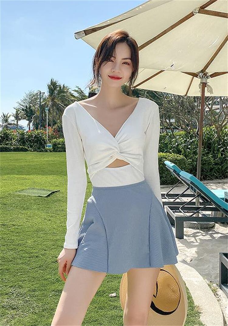 連体水着 長袖 日よけします スリム sweet系 スカート 学生 平角 温泉 水泳着 快適である