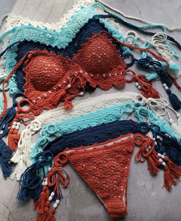 ニット水着 ワイヤー無し ホルターネックビキニ タッセル★★ 水着 レディース おしゃれ ビーチ ビキニ リゾート プール 体型カバー スリム 可愛い インスタ映え セパレート 露出控えめ 盛れるハイウエスト 韓国 日焼け対策 競泳 スイムウェア日焼け防止 スタイルアップ 着痩せ