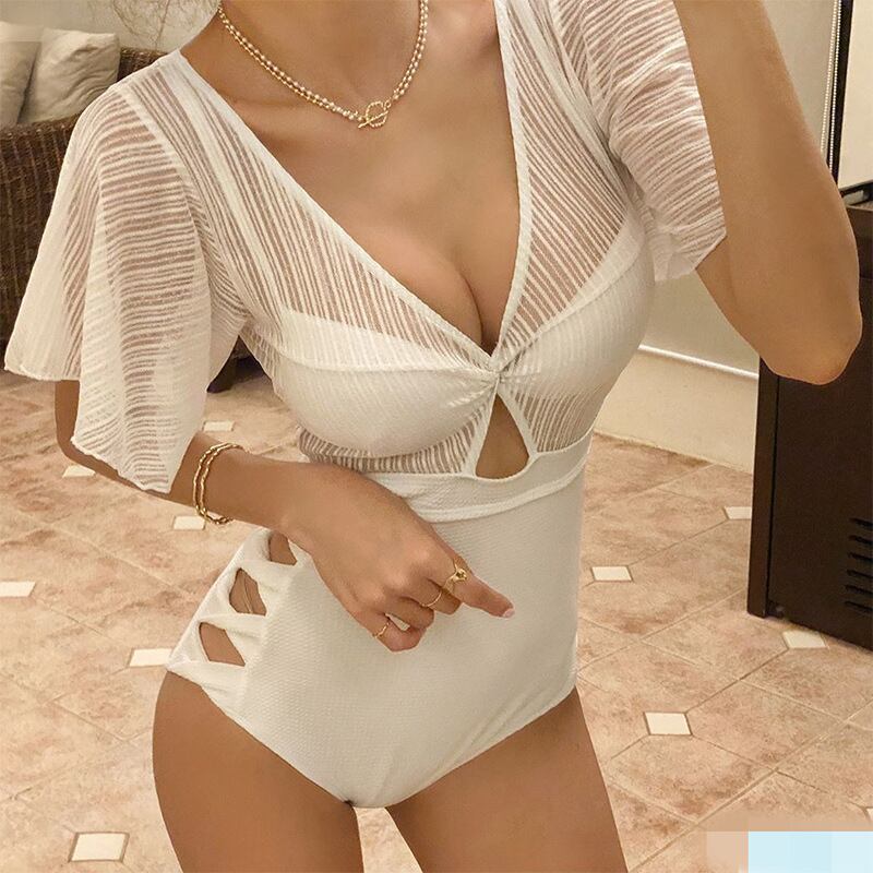 体型カバー水着 ワンピース水着 ワイヤーあり ママ水着 女性用 かわいい 白 黒 透け感あり レース 半袖 海★★ 水着 レディース おしゃれ ビーチ ビキニ リゾート プール 体型カバー スリム 可愛い インスタ映え セパレート 露出控えめ 盛れるハイウエスト 韓国 日焼け対策 競泳 スイムウェア日焼け防止 スタイルアップ 着痩せ