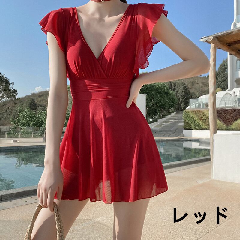 体型カバー水着 ワンピース水着 ワイヤーあり ワンピ ママ水着 女性用 かわいい ブラック 透け感あり