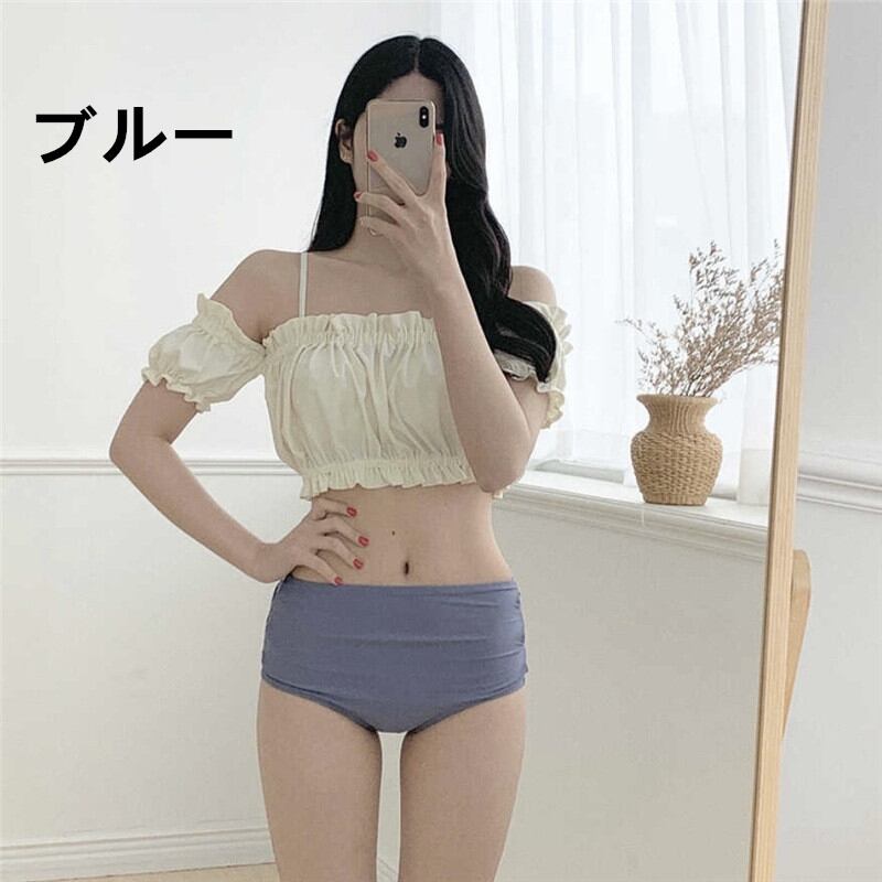 水着 オフショルダー ビキニ レディース 体型カバー セパレート パッド付 小胸 バスト 盛れる 肩だし