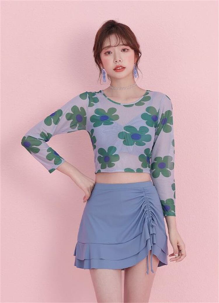 細見えする 温泉 長袖 フラットアングル フローラル 水着 3点セット 快適である★★ 水着 レディース おしゃれ ビーチ ビキニ リゾート プール 体型カバー スリム 可愛い インスタ映え セパレート 露出控えめ 盛れるハイウエスト 韓国 日焼け対策 競泳 スイムウェア日焼け防止 スタイルアップ 着痩せ