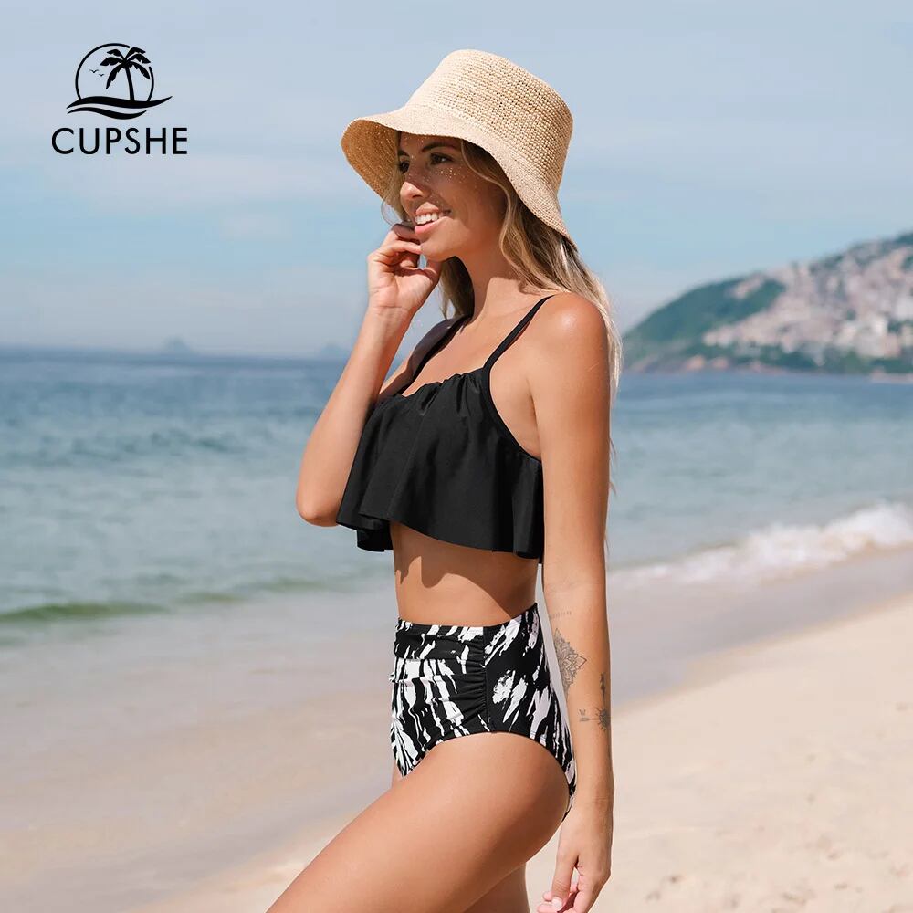 Cupshe ツーピースのタンキニ水着,ハイウエスト,女性用,セクシーなタンクトップ,ビーチウェア,スイマー用,コレクション2023 ビキニ Tシャツ T240618233838_01
