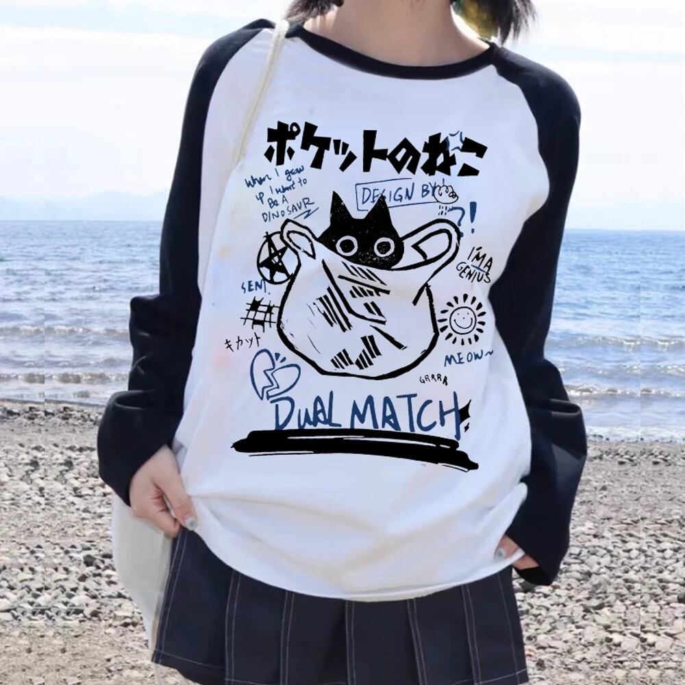 女性用長袖Tシャツ,素敵な漫画の服,原宿,オルチャン,美的,90年代,y2k T240926002622_09