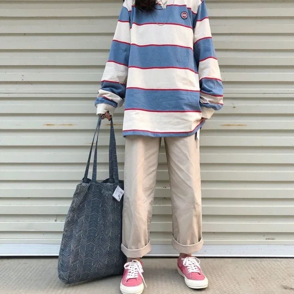 女性用長袖ストライプTシャツ,ゆったりとしたトップス,ミドル丈,韓国版,原宿スタイル,学生,春,秋 T240926002846_02