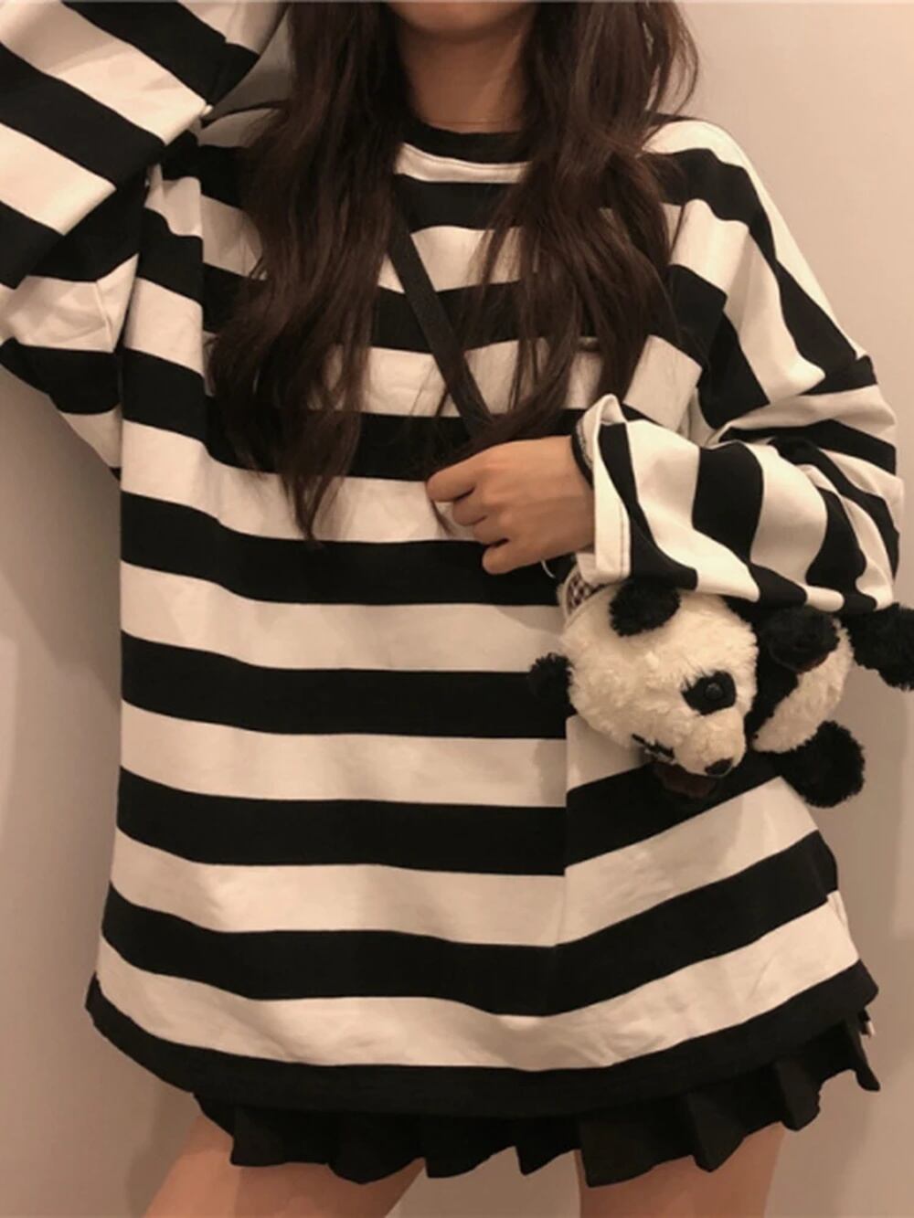 女性のための長袖ストライプTシャツ,大きいサイズ,ゴシック,カジュアル,原宿,ファッショナブル,ストリートウェア,秋 T240926002955_02