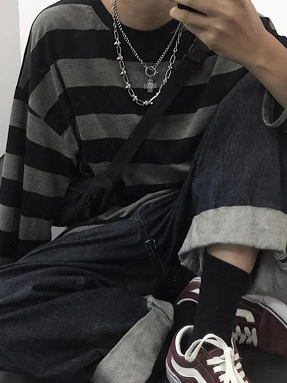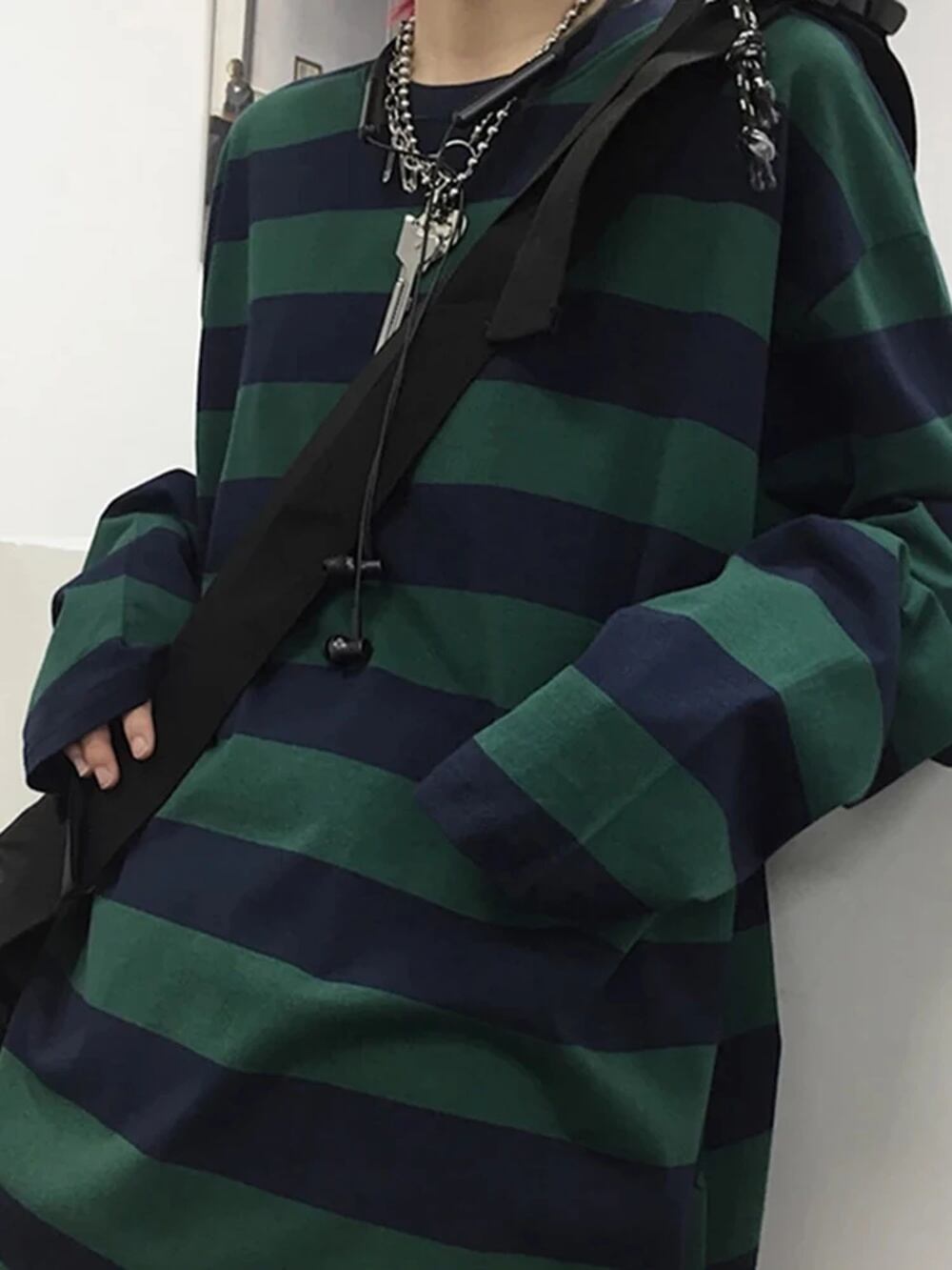 女性のための長袖ストライプTシャツ,大きいサイズ,ゴシック,カジュアル,原宿,ファッショナブル,ストリートウェア,秋 T240926002955_03