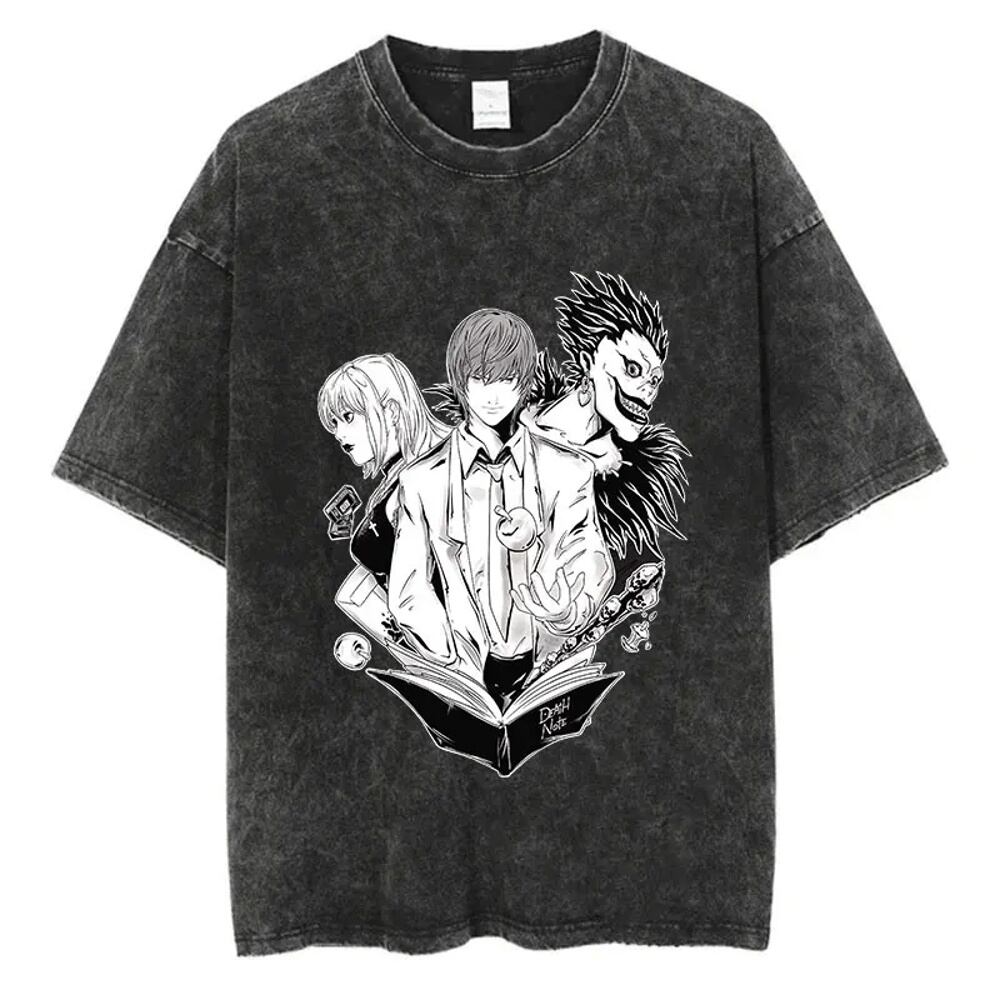 ユニセックスのウォッシュドコットンTシャツ,送料無料,装飾ノート,アニメーションプリント,特大,ストリートウェア,原宿,ヴィンテージ T240926003144_01