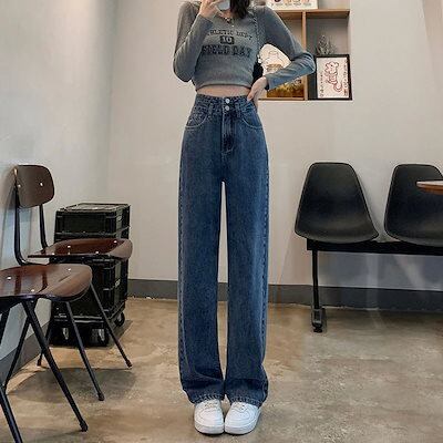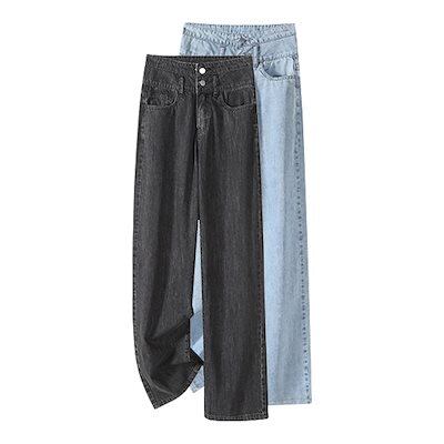 2024 初秋 デニムパンツ ニッチデザインダブルボタンスーパーハイウエストワイドレッグジーンズ 女性の純赤緩い百黒とグレーのストレートドラッグ長いズボン 韓国ファッション