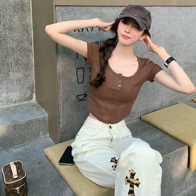 2024 初秋 デニムパンツ ジーンズ パンツ ハイウエスト ストリート ハンサム女子 ゆるダボ 美脚 体型カバー ホワイトコーデ スタイルアップ 色っぽ 女っぽ カジュアル きれいめ 大人っぽ 韓国