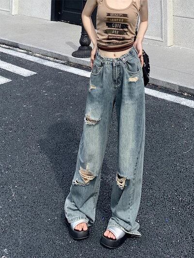 2024 初秋 デニムパンツ デニムパンツ ボトムス ジーンズ ファッション系スタイル ゆるダボ ジーンズ シルエット カジュアル メンズライク 韓国ファッション