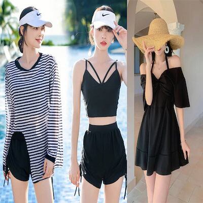2024 人気 水着 体型カバー レディース3点セット水着 体運動腹部痩せ見え長袖日焼け止め水着