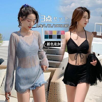 2024 人気 水着 3点セット 露出控えめ 水着 レディース 体型カバー ビキニ セパレート フィットネス タンキニ 大きいサイズ セットアップ 韓国 かわいい セクシー スポーツ おしゃれ ビキニ