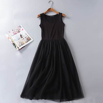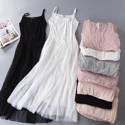 キャミワンピース タンクワンピース レディース フレア ワンピ キャミワンピ タンクワンピ マキシワンピ リゾート ロングワンピース チュール インナー 無地 黒 ピンク グレー 白 きれいめ エレ