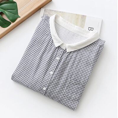 シャツブラウス レディース スタンドカラー シャツ ブラウス トップス フレンチスリーブ コットン100% 無地 白シャツ ストライプ チェック シンプル 大きいサイズ 体型カバー ゆったり 通勤 夏