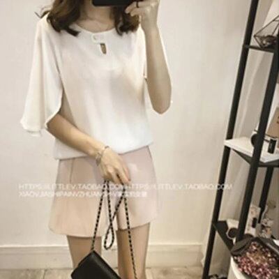 ノーカラー 無地 シャツブラウス ブラウス カットソー フレア袖 半袖 ブラウス ノーカラー 5分袖 シフォン シャツブラウス フリルブラウス きれ