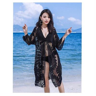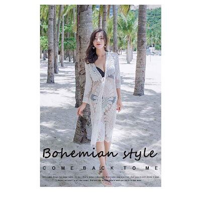 レースカーディガン 日焼け防止 ビーチウェア ビキニカバー ビキニブラウス ビーチドレス ボヘミアン 透け感 シースルー 羽織 お呼ばれ