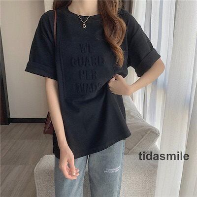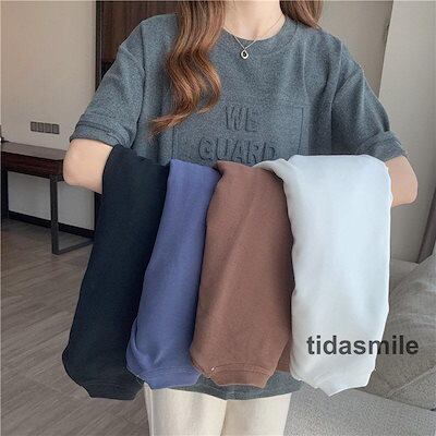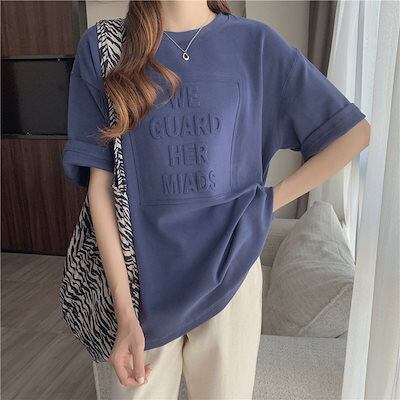 tシャツ レディース 半袖 カットソー 夏 春 トップス 文字 UV プルオーバー インナー 大きめ 薄手 体型カバー ビッグシルエット ナチュラル