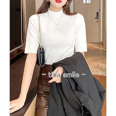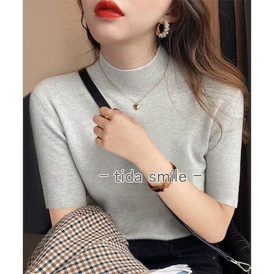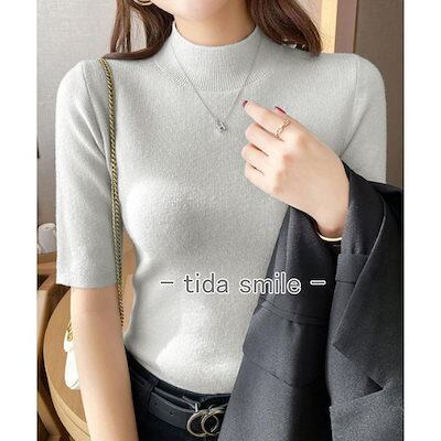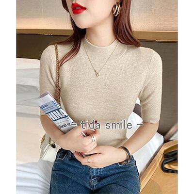モックネック ニットトップス レディース 五分袖韓国