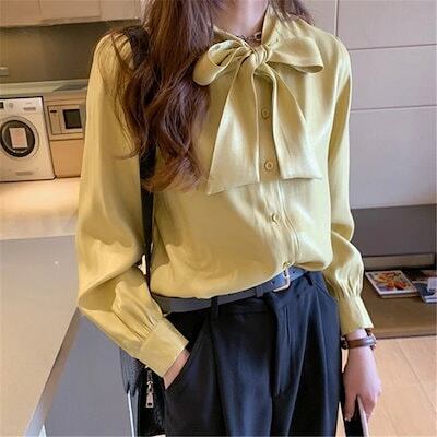 新入庫 ブラウス レディース 春 夏 春夏 トップス 白 ボウタイ チュニック 長袖 Yシャツ ホワイト イー ベージュ グリーン 20代 30代 40代 ママ 母 OL