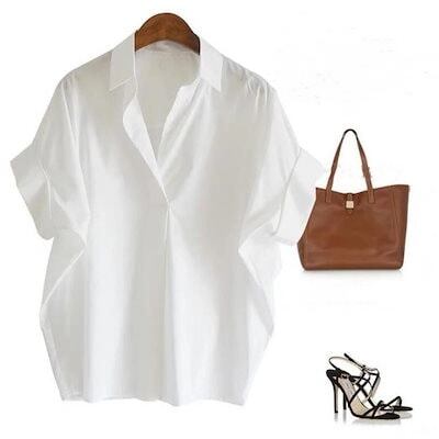 シャツ レディース 夏 オシャレブラウス カジュアル 可愛い 白 半袖トップス おしゃれ 上品 通勤 OL ゆったりシャツ