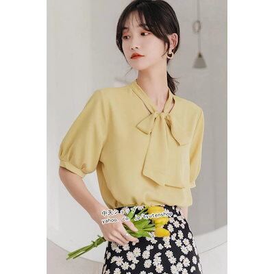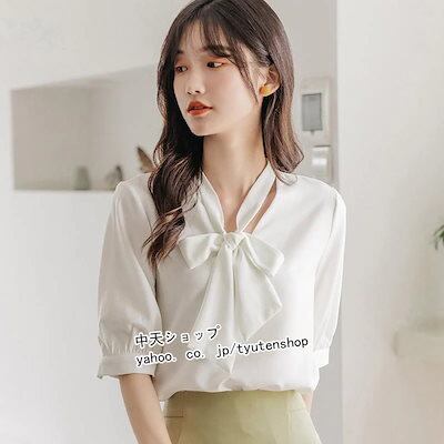 ブラウス レディース 半袖ブラウス リボンネックブラウス 白シャツ 春夏 トップス 着痩せ 韓国 気質 ゆったり パフスリーブ おしゃれ 通勤 入学式 30代40代50代