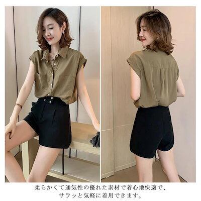 ブラウス レディース きれいめ シャツ 半袖 トップス 無地 大人女子 ゆったり 春夏服 体型カバー 着痩せ 通勤 シンプル 大きい フェミニン