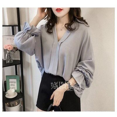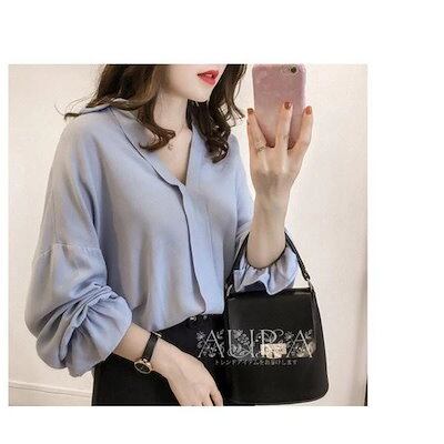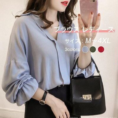 ブラウス おしゃれ 春秋 長袖 Vネック 通勤 上品 新作 レディース ブラウス シャツ 無地 オフィス トップス 大人 大きいサイズ 韓国風