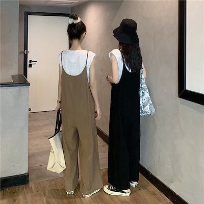 コーデ完成!サロペット 【細く見える】大きいサイズ サロベットバンツ 韓国ファッション 春夏オールインワン レディース ゆったり 体型カバー ワイドパンツ着痩せ ロングパンツ ノースリーブ$$母の日