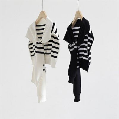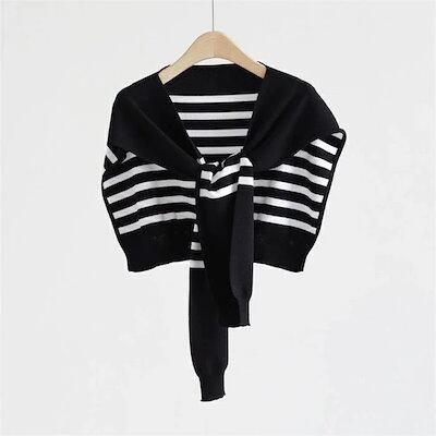 ボーダー カーディガン風 肩掛け ニット ストール レディース トップス ケープ ショール風 マント ショルダーカーディガン ショール 肩かけ ニットストール 薄手ニット ショート丈 羽織 肩巻き